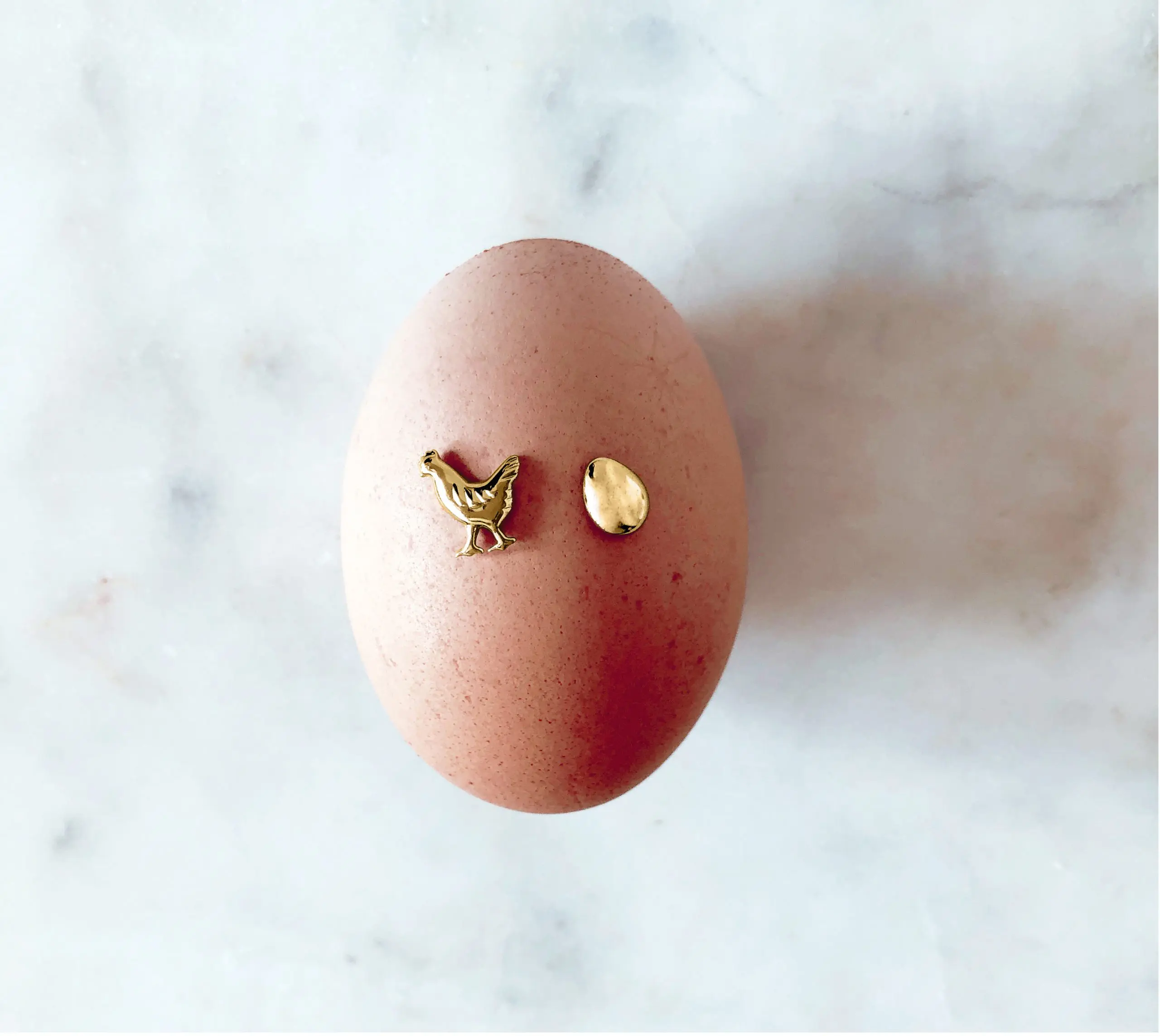 Chinese Dumpling Earring Set, Yellow Gold Plated